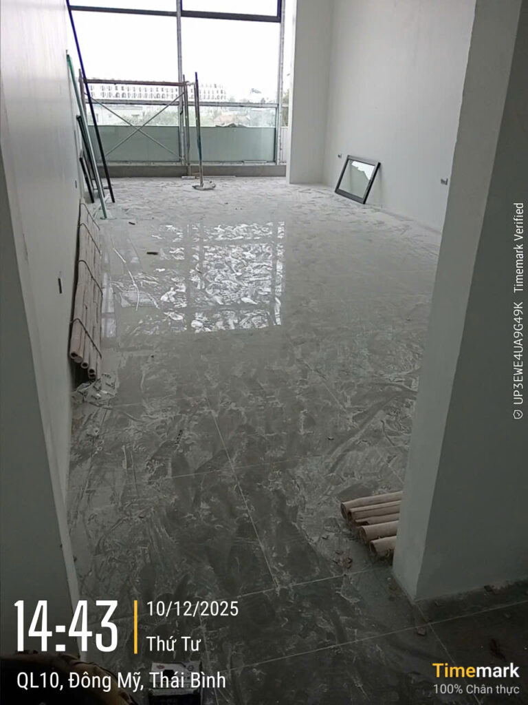 - Vệ sinh và làm sạch sàn nhà, chú ý vào các vết sơn, vữa bám và khe kẽ trên sàn.